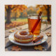 Autumn Blessings puzzle. A pretty illustration of plate of a glazed donut, apple cider with cinnamon sticks and a pretty Fall leaves background.