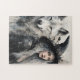 Au pays des puzzles colorés, où les rêves se mêlent à la réalité, une jeune sorcière aux cheveux longs et flottants remplit ses journées de sorts et d'aventures. De son côté se trouve son fidèle compagnon - un loup blanc majestueux, qui apporte la magie à chaque instant avec le myrte dans sa bouche. Toute la scène, peinte en aquarelles, rayonne de délicatesse tout en abritant l'essence puissante de l'imagination. Rompant la monotonie de la vie quotidienne, cette composition de conte de fées encourage à faire une pause et à s'immerger dans un monde plein de couleurs, d'enchantements et de mystères.