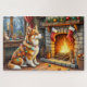 Puzzle Azawakh Sitting by Fireplace with Christmas Lights