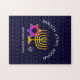 Élégant et élégant HANOUKKA BLESSINGS Jigsaw Puzzle. Le design montre un MENORAH couleur or avec l'étoile multicolore de DAVID et gris argenté DREIDEL. En haut, il y a le texte courbe qui dit BARUCH ATAH, ADONAI (Bénis soit toi, ô Dieu) et en dessous le texte dit HANOUKKA BLESSINGS. TOUT TEXTE EST PERSONNALISABLE, vous pouvez donc personnaliser avec votre choix de salutations et de texte. Les couleurs arrière - plans sont bleues de minuit. D'autres versions sont disponibles dans la collection HANOUKKA par Berean Designs.