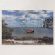 La scène de ce Puzzle est une photo originale de ZoeSPEAK d'un voilier échoué dans les eaux peu profondes. Sur la photo, le bateau rouge est incliné d'un côté, encadré de palétuviers, d'un rivage sablonneux et d'un grand ciel bleu rempli de nuages blancs caillouteux.