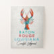 Lumineux et coloré Baton Rouge Louisiane design approuvé à 100% Crawfish. Couleurs chaudes de rouge, orange, turquoise et aqua dans un motif de style aquarelle sur un arrière - plan neutre.