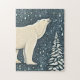 A fun artsy design featuring an enchanting majestic Polar Bear looking up into the Artic night sky, while large fluffy white snowflakes are falling down all around him.