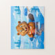 Puzzle Beaver Ice Bathing in a Striped Swimsuit
