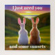 Illustration de deux lapins observant ensemble un beau coucher de soleil.