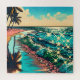 Belle vague bleue de l'océan sur une plage de sable avec une jolie réflexion dans l'eau. Palmiers et eau gazeuse et ciel nuageux.