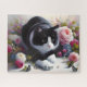 Puzzle Belle Chat et Fleurs Noir et Blanc
