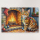 Puzzle Bengal Cat Fireplace with Christmas Lights