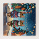 This festive design captures the joyful spirit of the holiday season, featuring an adorable cat.Nestled in a winter wonderland, complete with a decorated Christmas tree, and beautifully wrapped presents. Snowflakes gently fall, adding a magical touch to the scene, while the vibrant colors of the holiday decorations create a warm and cheerful atmosphere.