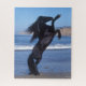 Puzzle Black Friesian Stallion Rearing On Beach