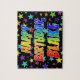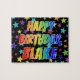 Cette conception de puzzle excitante et animée sur le thème de l'anniversaire présente le message "JOYEUX ANNIVERSAIRE, BLAKE" avec des caractères ayant un motif dégradé inspiré du spectre de l'arc-en-ciel coloré, en plus d'un motif de fond en forme d'étoiles vibrantes. Un puzzle coloré comme celui-ci pourrait être une façon amusante de reconnaître l'anniversaire de quelqu'un nommé Blake. [~Z0000468]