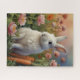 Amusement de Pâques et jeux puzzle d'un lapin lunatique entouré de fleurs vibrantes, ajoutant une touche amusante et festive à vos célébrations du printemps, des soirées de jeux et des vacances divertissantes.