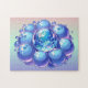Puzzle relaxant - Cosmic Blueberry Earth Planet comic style de livre esthétique - Cet imaginaire pastel doux L'image est générée et montre un groupe de bleuets, au milieu est la planète bleue Terre. Les couleurs principales sont différentes dans les tons bleu, violet, rose clair, lilas et vert.
