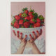 Un tableau hyperréaliste saisissant d'un bol débordant de fraises fraîches et brillantes, tenu par des mains délicates avec des ongles rouges vibrants. Les douces manches à manches carrées rose et blanche créent un contraste harmonieux, rehaussant les teintes rouges luxueuses du fruit. Cette oeuvre capture l'essence de l'indulgence et de la beauté dans une composition visuellement étonnante.