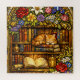 Puzzle Book and Sleeping Cat Lovers Faux Stain Glass