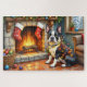 Puzzle Boston Terrier Fireplace with Christmas Lights