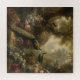 Tableau botanique vintage de trois paons dans un jardin anglais entouré de fleurs pastel