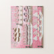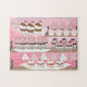 Les filles adoreront ce puzzle de boulangerie française. De mignons petits gâteaux avec des tourbillons de glaçage rose garnis de fraises et de saupoudrées. L'arrière - plan parties scintillant rose est une boulangerie française magique et sucrée.
