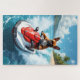 An energetic Boxer captured riding a jet ski across ocean waves in a bright coastal setting. The dynamic motion and vibrant colors create an exciting summer scene.