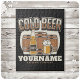 Conception de bar de société de brassage de brasserie de bière froide personnalisée, avec grande bouteille de bière, chope mousseuse et barils de brassage en bois. Personnalisez avec votre nom ou texte personnalisé!