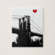 original photo turned graphic with a red heart of the Brooklyn Bridge