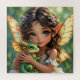 An adorable puzzle with a little brown eyed elven fairy and a cute little baby dragon she is holding.