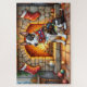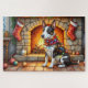 Puzzle Bull Terrier Fireplace with Christmas Lights