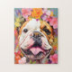 Un design de printemps coloré avec un Bulldog portant une couronne de fleurs