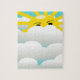 VISAGE JAUNE SOLEIL CACHÉ DERRIÈRE LES NUAGES BLANCS FLUFFY