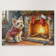 Puzzle Cairn Terrier Sitting Fireplace Christmas Lights