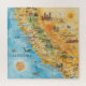 This illustrated watercolor map highlights California in a charming, artistic style inspired by hand-painted cartography. Warm earth tones blend with soft ocean blues, featuring iconic landmarks, regional symbols, and city names arranged within an interlocking map layout. The playful yet detailed composition creates an engaging visual experience that blends geography, creativity, and educational appeal, making it perfect for lovers of travel, maps, and artistic illustrations.