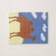 Puzzle amusant avec un dessin humoristique Art d'un chameau à bosse qui se promène au-dessus de dunes de sable dans le désert sous un ciel bleu taché de nuages. Créé avec du papier de construction et manipulé dans Photoshop par KLeighE de Hinterland Harmony’s Whimsical Cartoon Art ™