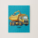 Ce puzzle mignon a un Camion de Pompage et un Mini Excavateur peut être personnalisé avec votre petit nom ou un nom d'ami