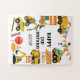 Ce design présente quatre camions de construction classiques de couleur jaune vif disposés ensemble sur un fond marron et noir. Il comprend d'autres éléments de construction comme des glissières de sécurité et des cônes de signalisation ainsi que des bandes de circulation noires et jaunes. Nous vous couvrons pour une fête sur le thème des camions de construction : fournitures, décorations, délicieux gâteaux et cadeaux personnalisés significatifs !