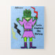 Un joli personnage de dessin animé géant Capitaine Zoey souriant et saluant. Personnalisez avec le nom de votre enfant. Avec le dicton, Explorons la Galaxie. Capitaine Zoey est un joyeux robot vert avec un sourire rose sympathique et brandissant son bonjour à la main, avec un top rose et une tenue de jupe et des bottes de ceinture et d'espace violets, avec l'apparence des boutons lumineux 3D sur les poignets et des pétales de collier et de fleurs en tenue, et des boulons éclair rouges, jaunes et noirs. Puzzle amusant pour tout amateur d'espace ou de galaxie. Bon article de garde. Jouez avec le temps et encore, puis le cadrer pour être accroché au mur. Dessin original Caractères de dessin © 2014 TamiraZDesigns.