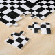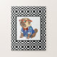 Hipster Carlin sur Challenging noir et blanc damier arrière - plan; amusant puzzle pour toute la famille!