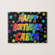 Ce puzzle animé et amusant sur le thème de l'anniversaire comprend le message "HAPPY BANTHDAY, CAROL" avec les personnages ayant un spectre arc-en-ciel coloré inspiré motif dégradé, en plus d'un champ excitant d'étoiles arrière - plan motif. Un puzzle vibrant comme celui-ci pourrait être une façon amusante d'envoyer un message d'anniversaire à quelqu'un nommé Carol. [~Z0000468]
