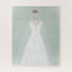 Peinture originale d'une mariée en robe de mariée blanche et voile
