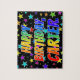 Ce puzzle passionnant, animé, sur le thème de l'anniversaire, comprend le message "HAPPY BANTHDAY, CARTER" avec les personnages ayant un spectre arc-en-ciel coloré inspiré motif dégradé, ainsi qu'un champ amusant d'étoiles arrière - plan motif. Un puzzle vibrant comme celui-ci pourrait être utilisé pour envoyer des voeux d'anniversaire à quelqu'un du nom de Carter. [~Z0000468]