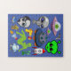Puzzle Cartoon Space Aliens Grays UFO Art Collage feuille