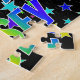 Cette conception amusante, animée, sur le thème de l'anniversaire de la scie à puzzle comprend le message "HAPPY BANTHDAY, CASEY" avec des personnages ayant un motif dégradé coloré inspiré du spectre arc-en-ciel, en plus d'une étoile vibrante forme motif arrière - plan. Un puzzle vibrant comme celui-ci pourrait être une façon amusante d'envoyer des voeux d'anniversaire à quelqu'un nommé Casey. [~Z0000468]