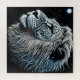 L'art de Ai représente un lion noir et blanc lors d'une nuit mystique avec un arrière - plan étoilé.