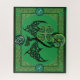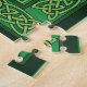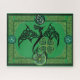 Dragon noir tribal avec ailes de travail de noeud céleste vert. Des nuances de travail de noeud vert et celtique sont derrière et autour des dragons et quatre trèfle de feuilles.