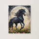 Puzzle Champ de fleur de lune de cheval noir,