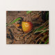 Un champignon brun-orange sort du sol forestier entouré d'une abondance de feuilles bruns morts. Le champignon et l'herbe verte voisine sont la seule couleur parmi les feuilles morts. Si vous aimez la macro photographie, notre "Woodland Mushroom Jigsaw Puzzle" est pour vous. Commandez les vôtres dès aujourd'hui !
