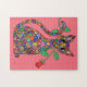 Ce dessin d'art populaire mignon, amusant et fantaisiste présente un chat en mosaïque coloré, presque psychédélique, recouvert de fleurs multicolores, géométriques, très détaillées, de style millefiori ou mauresque ressemblant à celles du verre de Murano. Cette petite chatte d'imaginaire unique est assise contre un arrière - plan rose tenant une seule rose rouge dans sa bouche. Ce puzzle unique est parfait pour les enfants, les adolescents, les ados et les jeunes de tout âge.