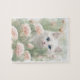 Puzzle Chat blanc et fleurs roses