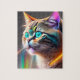 Belle Chat Couleur Belle Couleur Colorée Avec Lumière De Non Et Couleurs Arc En Ciel Style 3D Peinture Numérique Colorée Poster Chat Pour Salle Enfants, Puzzle De Chat,