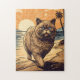 Design moderne coloré, parfait pour Exotic-shorthair-amoureux des chats et Exotic-shorthair-propriétaire. Un Exotic-shorthair-cat à une plage tropicale sous les palmiers et un coucher de soleil dans l'arrière - plan.