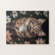 Puzzle Chat de Maine Coon entouré de fleurs